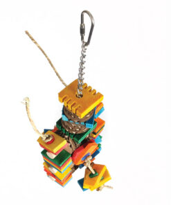 Lots of wood and sisal to chew on and explore Helps keep feet and beak active and healthy Comes with a pearlink so you can fasten it onto cages Suitable for African Grey, Conure, Cockatoo and more