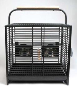 A useful travel cage for medium sized birds Has two feeding dishes Has a perch for resting on Suitable for African Grey, Conure, Quaker and more